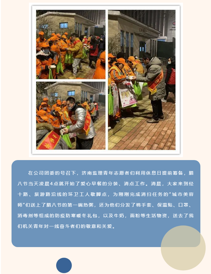 濟(jì)南監(jiān)理青年志愿者參加市直機(jī)關(guān)團(tuán)工委“泉心泉意”志愿團(tuán)暖冬行動(dòng)